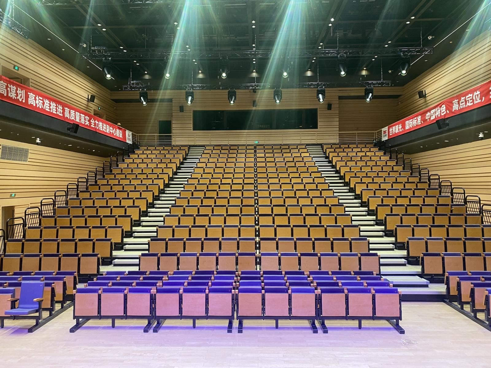 提高觀眾舒適度,電動(dòng)或手動(dòng)翻折;固定座椅通常為前置,即座椅安裝于臺(tái)階邊緣。